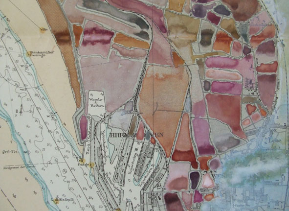 Aquarell auf geografischer Karte