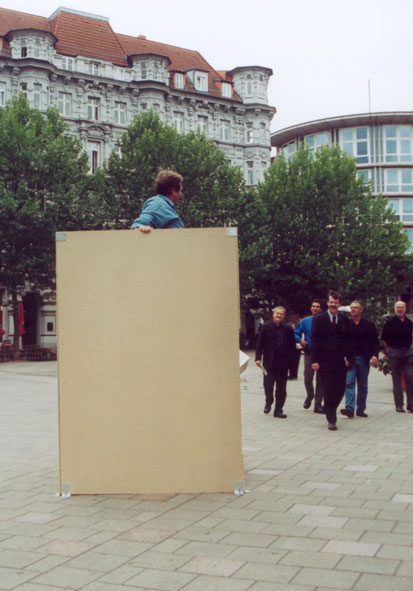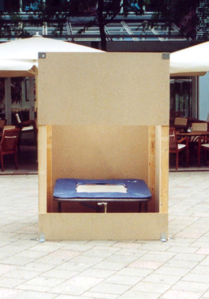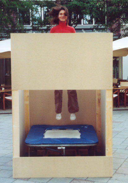 Im Inneren eines Spanholzturmes ist ein Trampolin aufgestellt, das von aussen von drei Seiten nicht sichtbar ist. Fängt ein Mensch im Inneren an Trampolin zu springen, sind von aussen in zeitlicher Abfolge Teile des Menschen zu sehen und die Arbeit wird zu einer lebenden Skulptur - eine Symbiose von starrer "minimalistischer Holzskulptur" und veränderbarer "menschlicher Körperskulptur". Der Mensch wird so Teil der Skulptur bzw. die Arbeit wird erst mit dem Trampolinspringer vollständig.