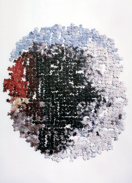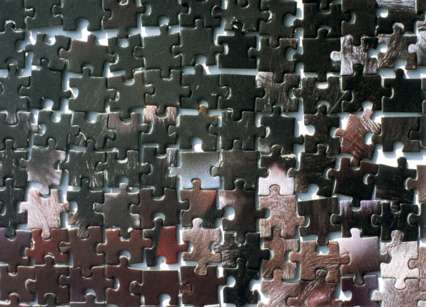 1500teiliges Puzzle mit einem Hundemotiv ist nicht nach Anweisung, sondern nach Farben sortiert zusammengesetzt. Es entsteht so nicht das angegebene Motiv, sondern ein abstraktes Farbenspiel ohne konkrete Motivdarstellung.