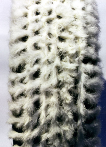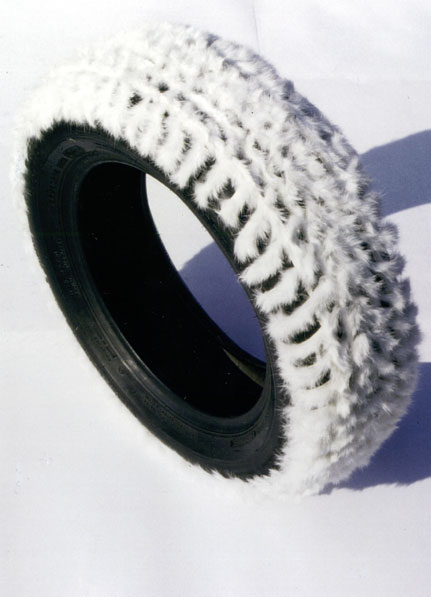 In das Profil eines Autoreifens ist Kaninchenfell eingearbeitet.