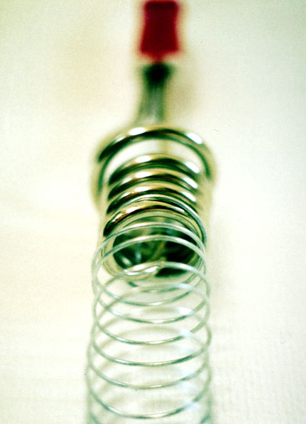 Ein Tauchsieder ist durch eine Spiralfeder meterlang verlängert.
