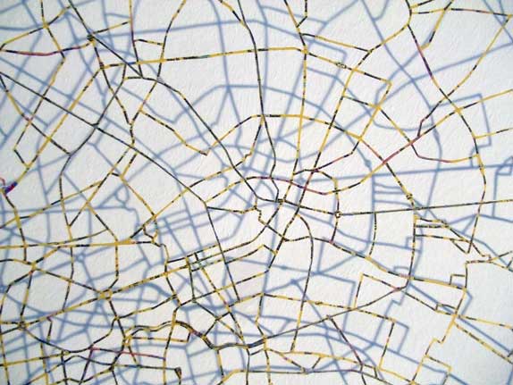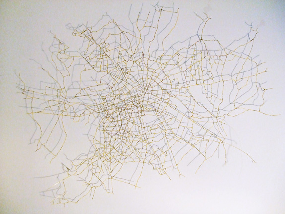 Aus einer Berliner Stadtkarte ist alles weggeschnitten was nicht Hauptverkehrsstasse darstellt