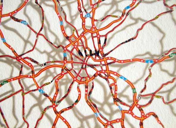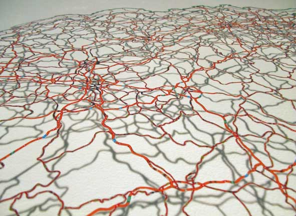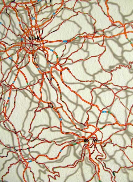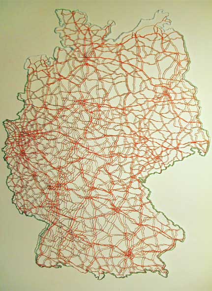 Aus einer geografischen Karte ist alles weggeschnitten was nicht Schnellstrasse und Autobahn darstellt