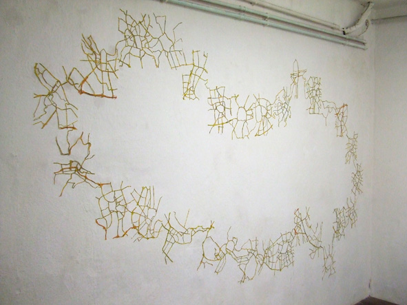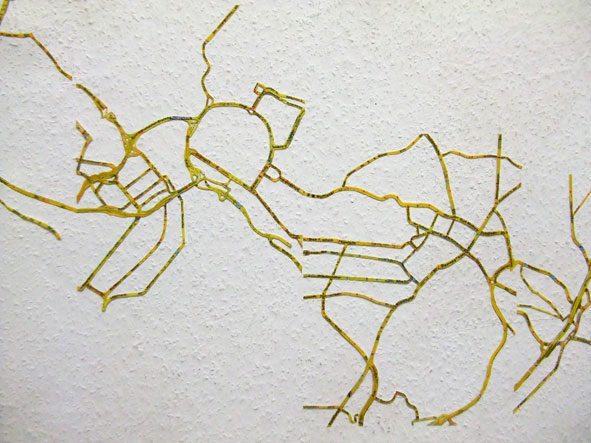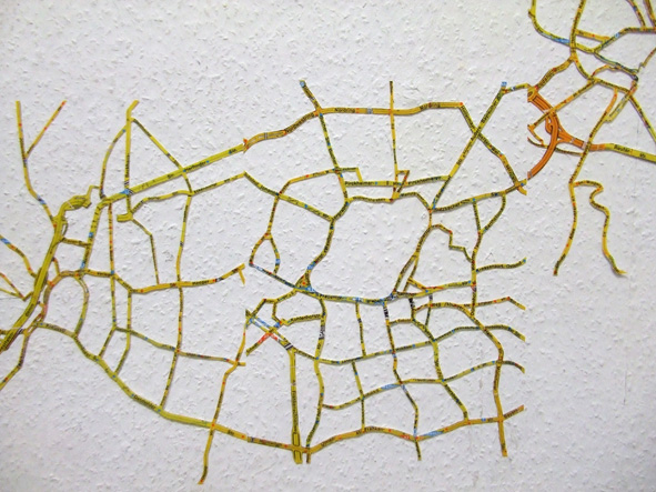 29 Staedtestrassenplaene sind zu einer Wandzeichnung zusammengefuegt