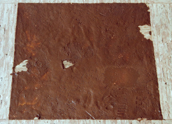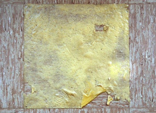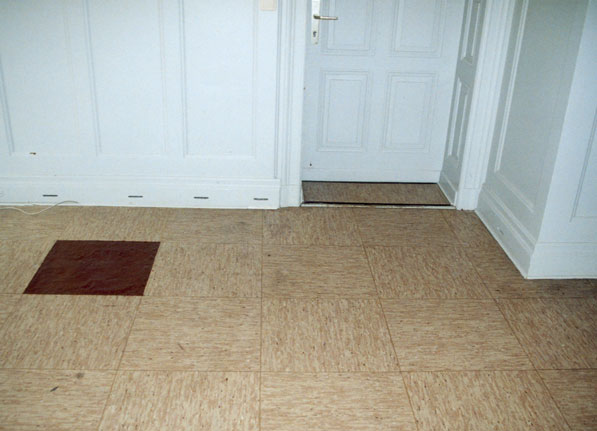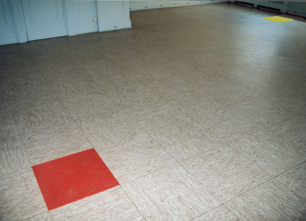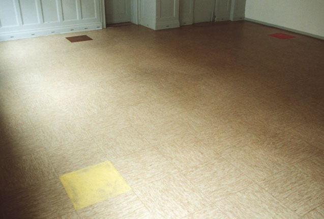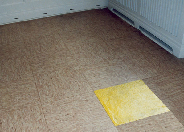 3 Bodenfliesen im Ausstellungsraum sind durch Kaugummifliesen (Kirsche-Limette-Cola) ersetzt.