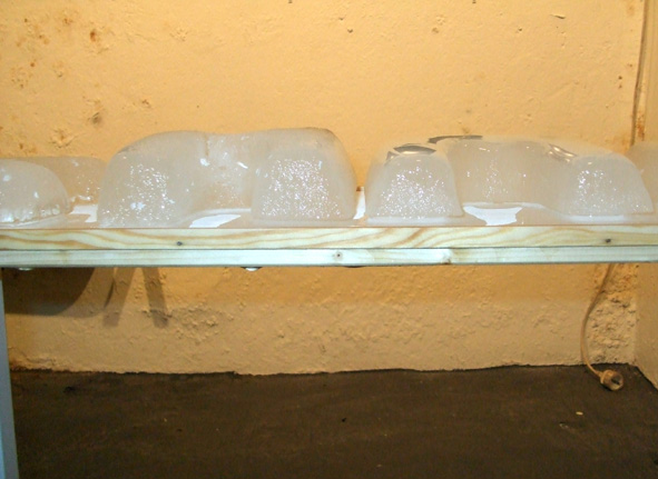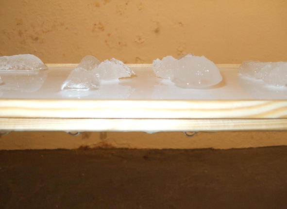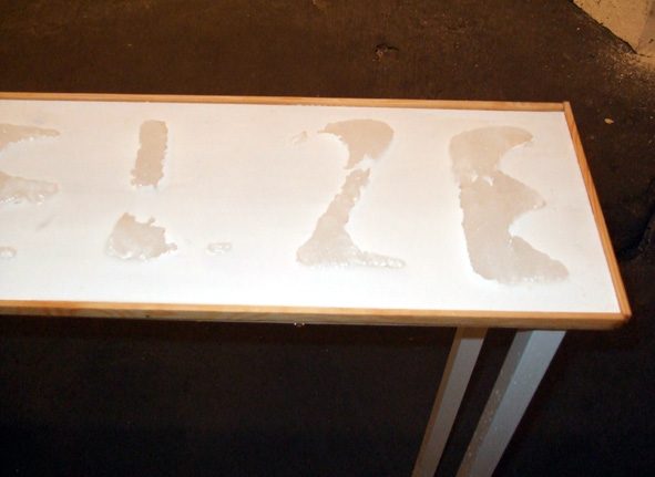 14 Eisbuchstaben schmelzen während der Finissage der "Neuschnee" Ausstellung